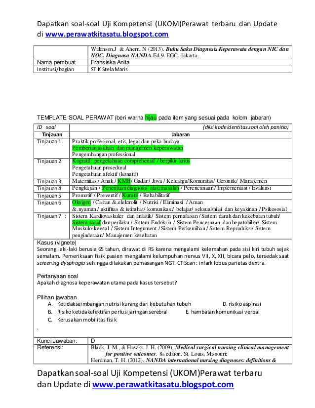 Gadar docx soal uji kompetensi keperawatan gawat darurat dan kunci jawaban serta pembahasan edisi 1 ukomperawat blogspot com halo kali ini kita course hero. Klien dalam tahap penyembuhan dari cedera kepala baru sadar dan berespon terhadap tindakan keperawatan. Template soal perawat (beri warna hijau pada item yang sesuai pada kolom jabaran) id soal. Buat catatan dari yang belum mengerti tersebut. Masih ada waktu 34 hari lagi menuju hari h ujian kompetensi d3 perawat dan 41 hari lagi untuk ukom ners periode 3 yang akan berlangsung bulan oktober tahun 2017.