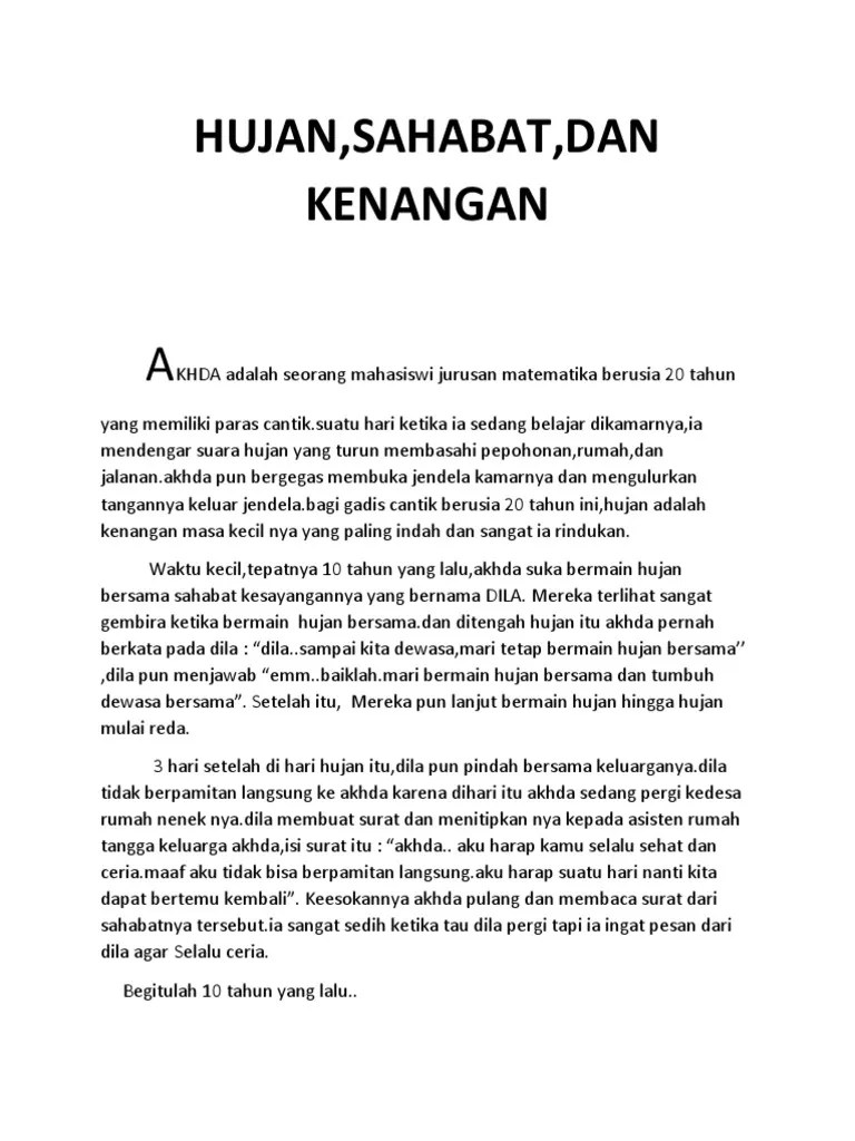 Namun sebelum lanjut ke poin inti mengenai contoh cerpen sahabat terbaik,. Cerpen kenangan seorang sahabat source: Kenangan seorang sahabat karya nasya cindy p.h. Saya siswi smp yang hampir lulus karena saya sedang menjalani un saya sering di sebut indri . Tapi teman hidup, yaitu seorang sahabat yang begitu peduli, .