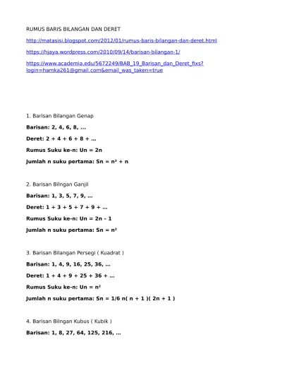 Soal un barisan dan deret un 2013 kode soal 212 1. Rumus jumlah n suku pertama deret aritmetika. 4.4 mengenal pola bilangan, barisan, deret, dan semacam, dan memperumumnya; Jika dinyatakan dalam bentu deret, maka . Menggunakan untuk menyelesaikan masalah nyata serta menemukan .