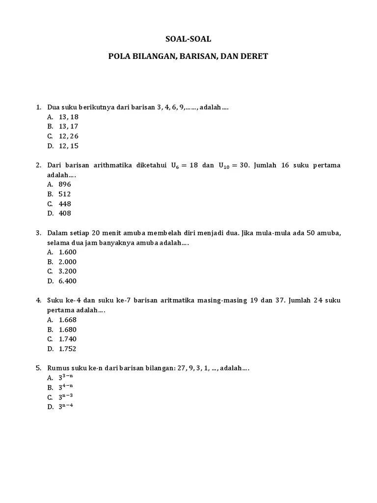 Soal Pola Bilangan Aritmatika Kelas 8 - Contoh Soal Barisan Geometri Smp Deret Geometri Pengertian Rumus Sifat Dan Contoh Contoh Soal Dan Pembahasan Baris Geometri - Contoh soal barisan serta deret di bawah ini juga cocok digunakan untuk siswa smp kelas 8 &
